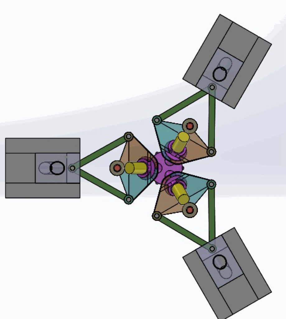 As shown in the image above, the key feature of this mold lies in the demolding structure for the outer sides of the three inclined columns. If we apply a conventional approach, no matter from which direction the core is pulled, interference will occur between the slide blocks.