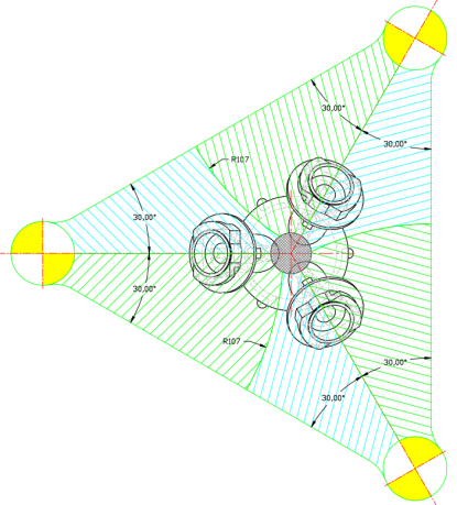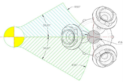 First, determine a rotation center and draw the first set of slide blocks.